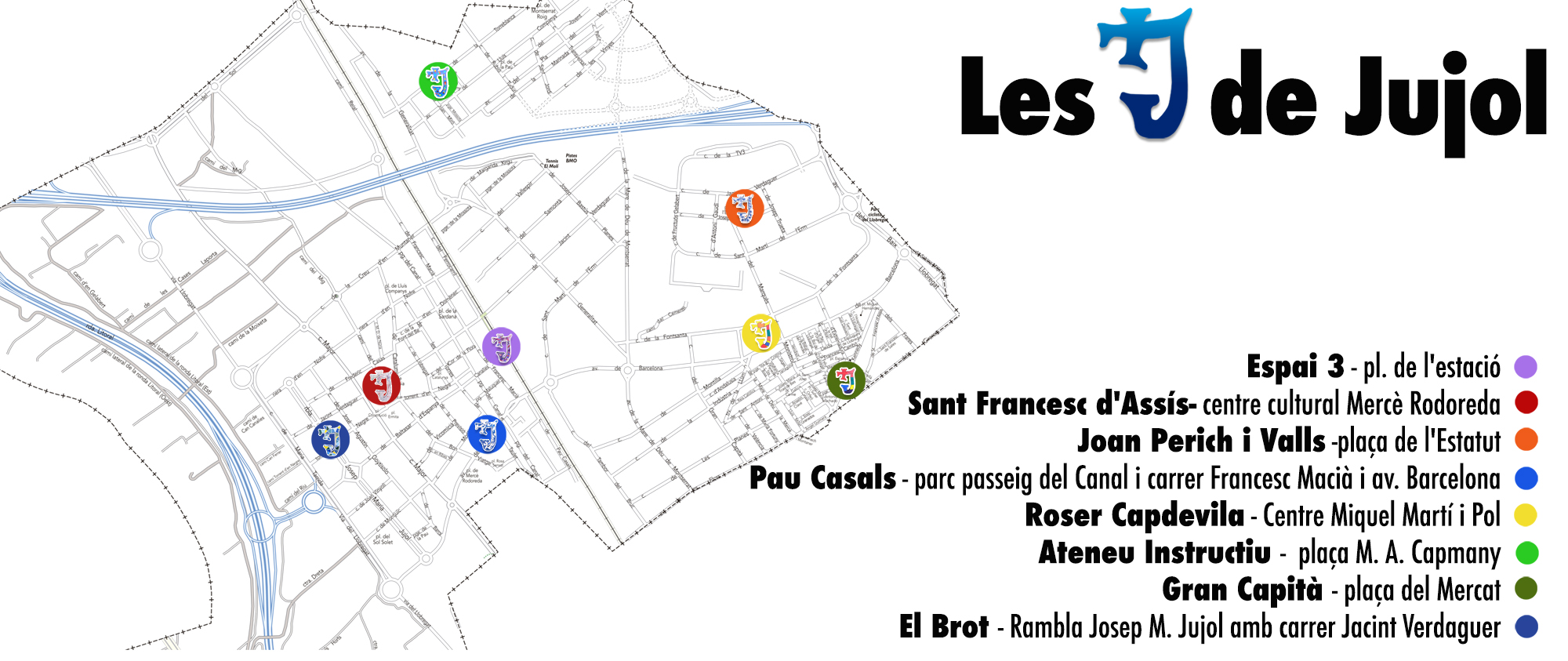 En conmemoración del Año Jujol140, el Ayuntamiento de Sant Joan Despí ha promovido una iniciativa de arte urbano con las ocho escuelas de educación primaria de la ciudad. Cada escuela ha pintado una 'J' de grandes dimensiones, cada una con un diseño diferente y muy original. Se trata de la característica letra jota que el artista Josep Maria Jujol utilizaba para firmar sus obras.